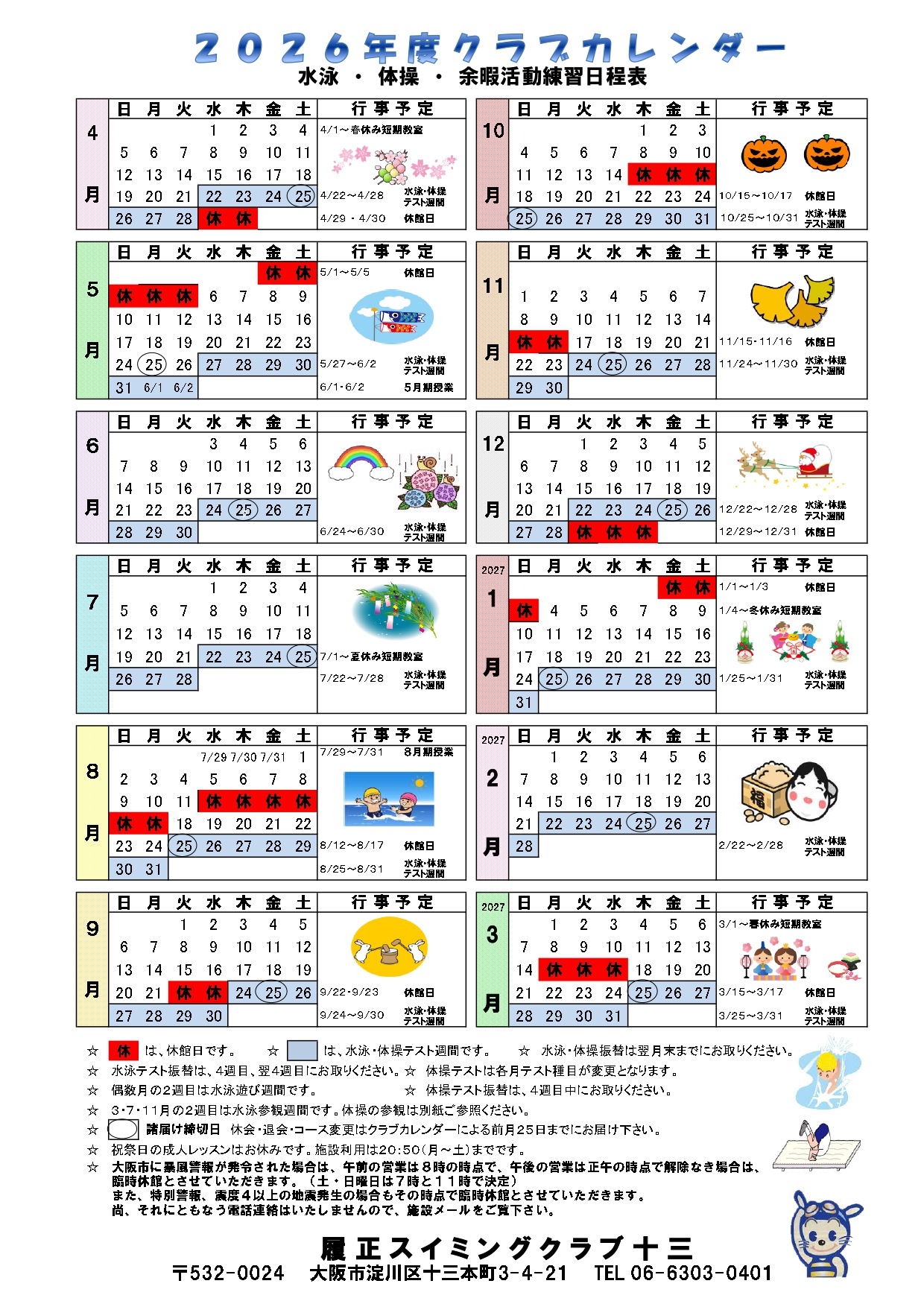 2026年度 クラブカレンダー