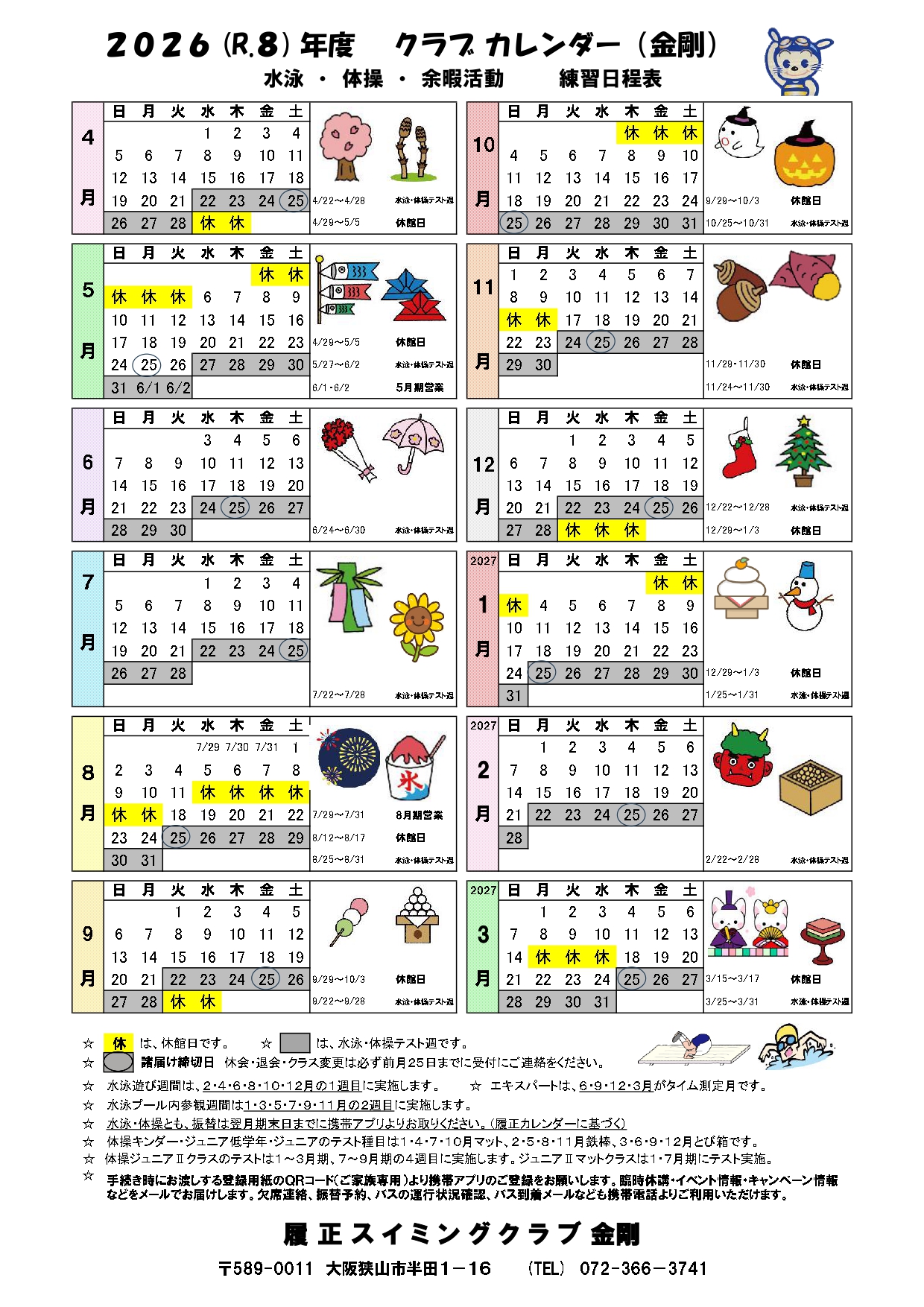 2026年度クラブカレンダー
